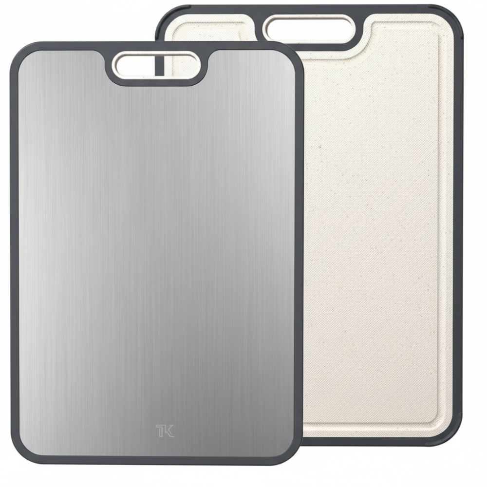 Met de Titanium snijplank van Trendy Kitchen haal je niet zomaar een keukenaccessoire in huis, maar een slijtvaste, hygiënische en multifunctionele plank die koken makkelijker én leuker maakt. Dankzij de combinatie van titanium en tarwestro profiteer je van het beste van beide werelden: duurzaamheid, gebruiksgemak en stijl.